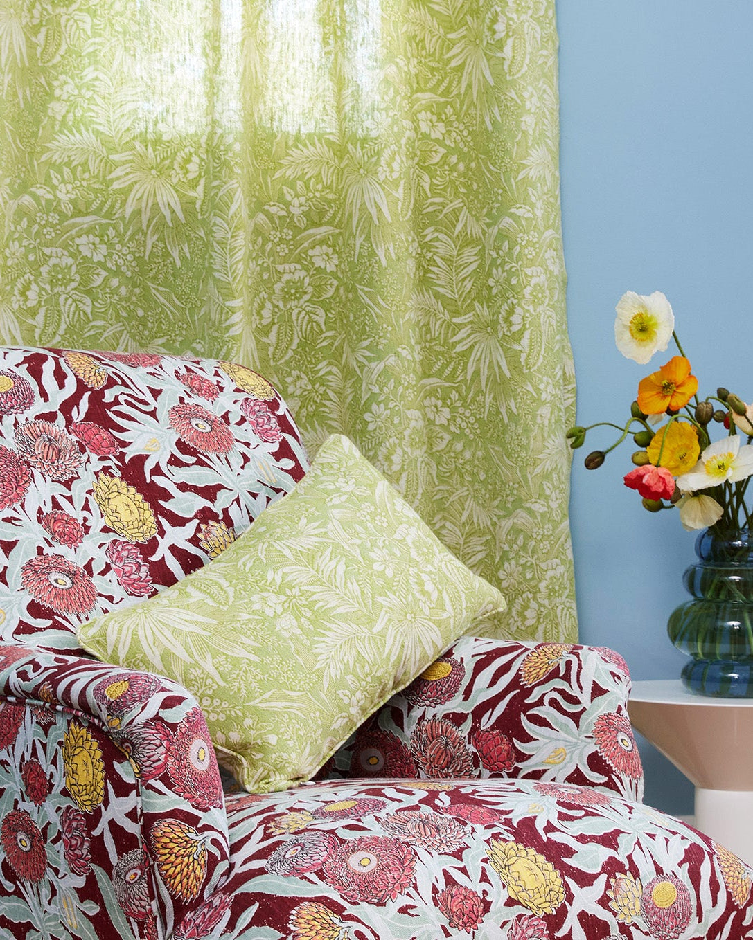 Our hand-illustrated, screen-printed textiles are crafted on 100% linen in limited edition designs, perfect for a range of interior decor.