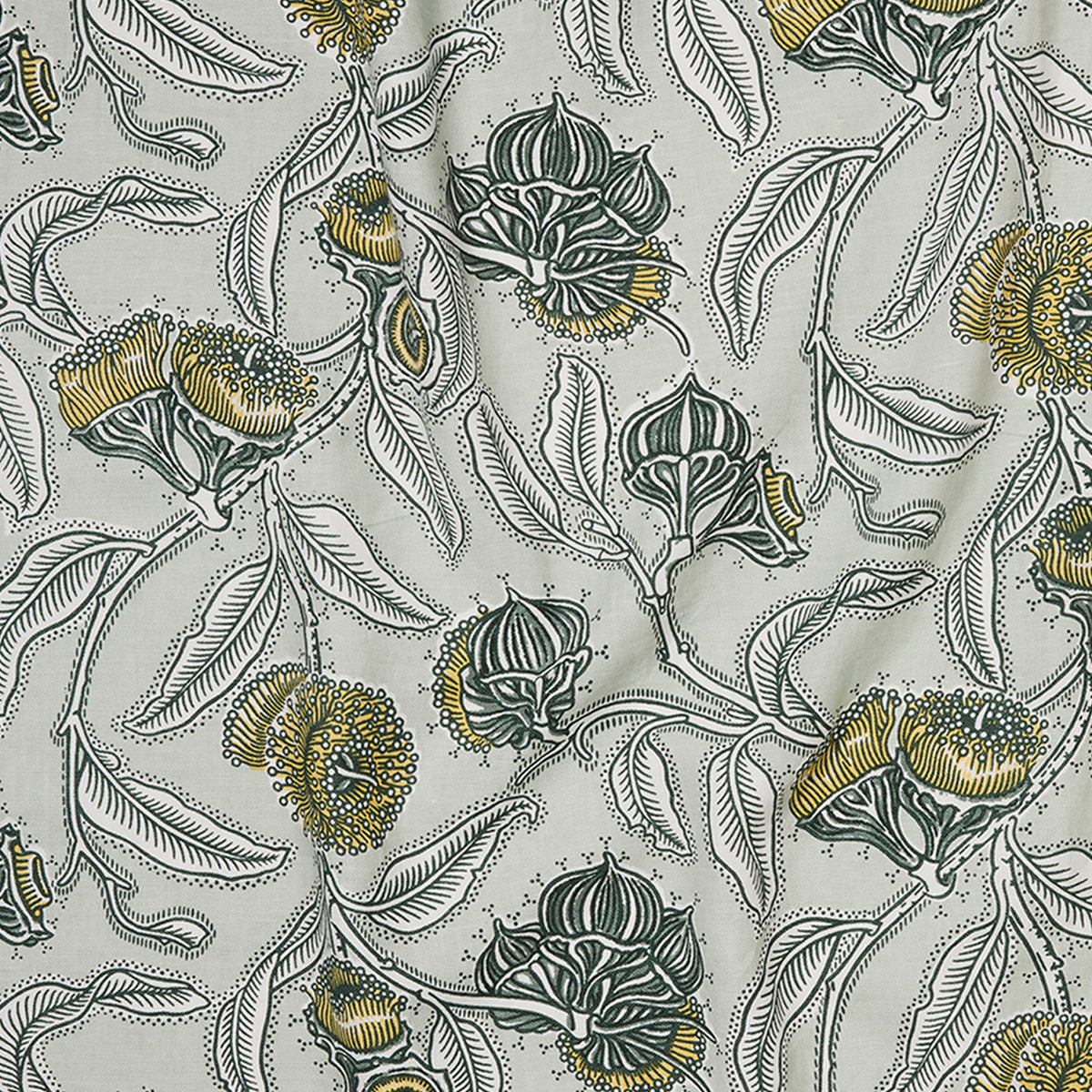 The Utopia Goods Youngiana Grey-Green echoes the iconic Australian landscape and native Eucalyptus foliage. The print encapsulates the unusual ribbed ‘cap’ of the glorious eucalyptus tree and playfully transforms the plant into stylistic winding branches. Given the delicacy of the pattern repeat, the design appears to flow and grow. Available in three rich colour palettes, including rusty umber, indigo blue and a versatile sagey green-grey. The hand-illustrated pattern has inimitable character and charm and fabulous for many interior schemes.